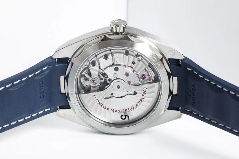Синий каучуковый ремешок образца 2018 года, с двойной раскладывающейся застежкой Omega. |