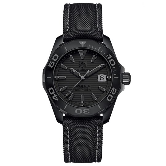 Черный нейлоновый ремешок, с двойной раскладывающейся застежкой Tag Heuer Aquaracer. |
