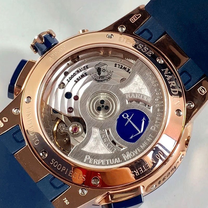 Синий каучуковый ремешок, с двойной раскладывающейся застежкой Ulysse Nardin. |