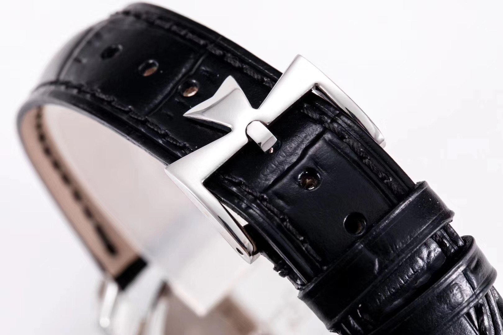 Чёрный (коричневый) кожаный ремешок, с простым (с помощью шипа) позолоченным полированным замком Vacheron Constantin. |